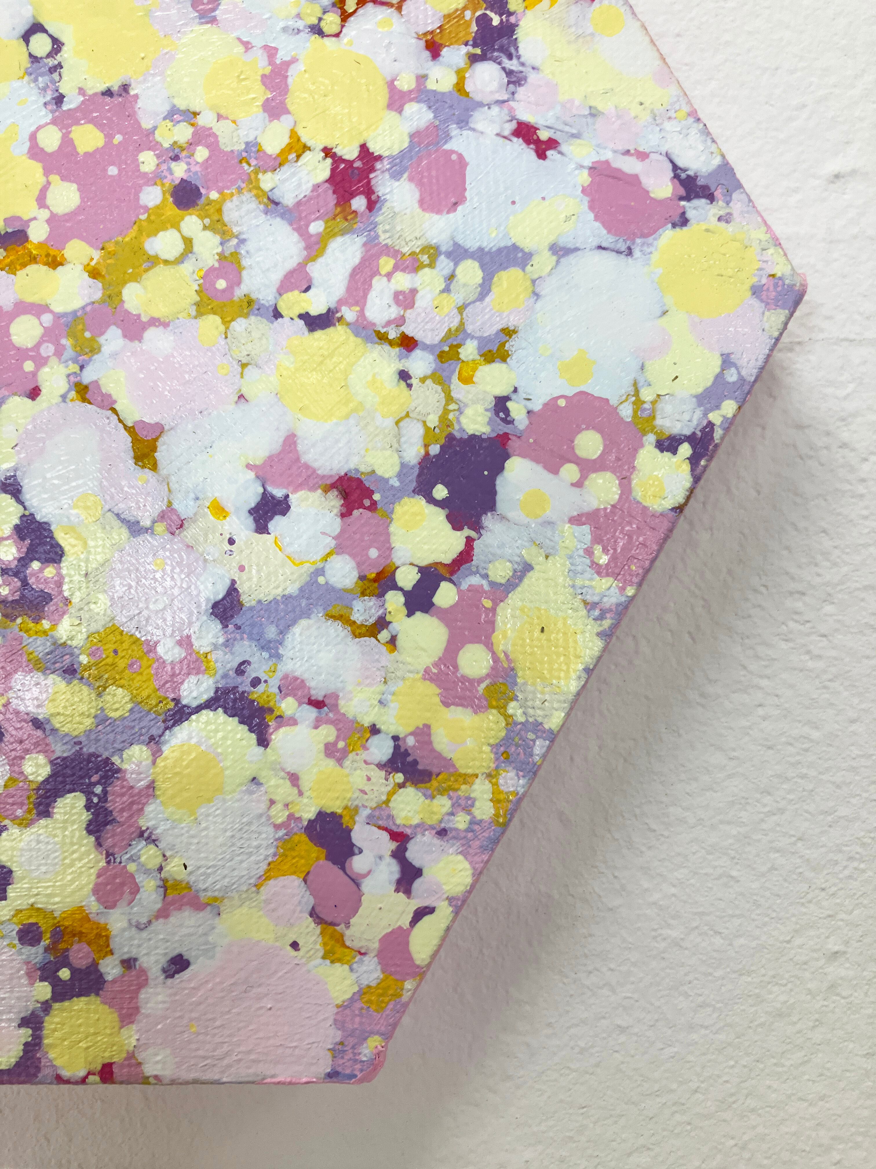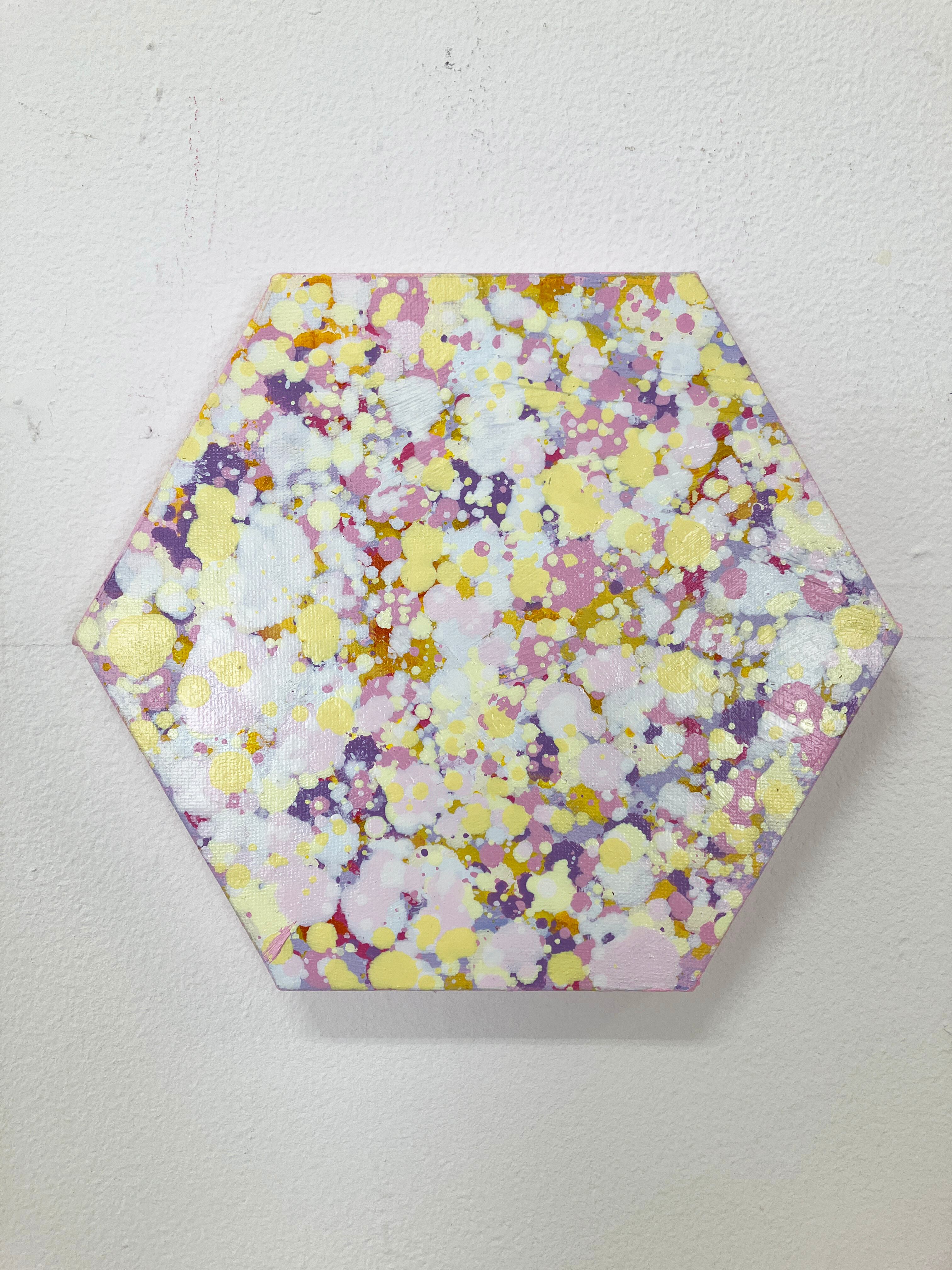 地球に降り注ぐ、無形のエネルギーを表現したシリーズです。透明感のある美しい色彩の重なりは、オーロラのような輝きや花火のようなきらめきとも評され、繊細で神秘的なムードを併せ持っています。独特の透明感と浮遊感は、ポタポタと薄い絵の具をたらすことを繰り返すことにより生み出されます。光り輝く色彩の渦が、見る人に明るく力強いエネルギーを届ける作品群です。
