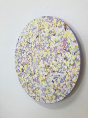 地球に降り注ぐ、無形のエネルギーを表現したシリーズです。透明感のある美しい色彩の重なりは、オーロラのような輝きや花火のようなきらめきとも評され、壮大なスケール感と繊細で神秘的なムードを併せ持っています。独特の透明感と浮遊感は、ポタポタと薄い絵の具をたらすことを繰り返すことにより生み出されます。光り輝く色彩の渦が、見る人に明るく力強いエネルギーを届ける作品群です。