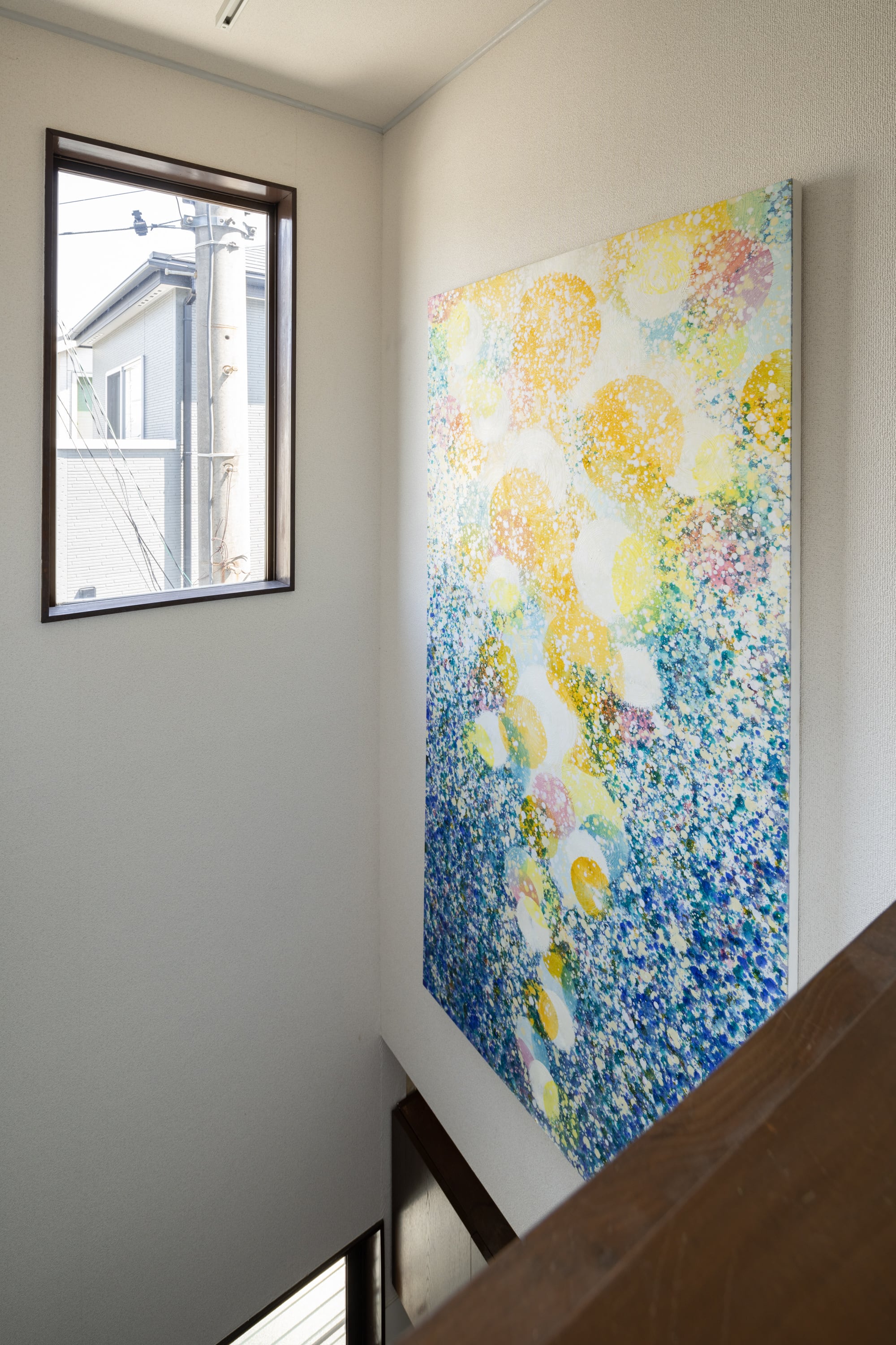 地球に降り注ぐ、無形のエネルギーを表現したシリーズです。透明感のある美しい色彩の重なりは、オーロラのような輝きや花火のようなきらめきとも評され、壮大なスケール感と繊細で神秘的なムードを併せ持っています。独特の透明感と浮遊感は、ポタポタと薄い絵の具をたらすことを繰り返すことにより生み出されます。4m近くの大きな作品から、手のひらにのるサイズの作品まで、光り輝く色彩の渦が、見る人に明るく力強いエネルギーを届ける作品群です。