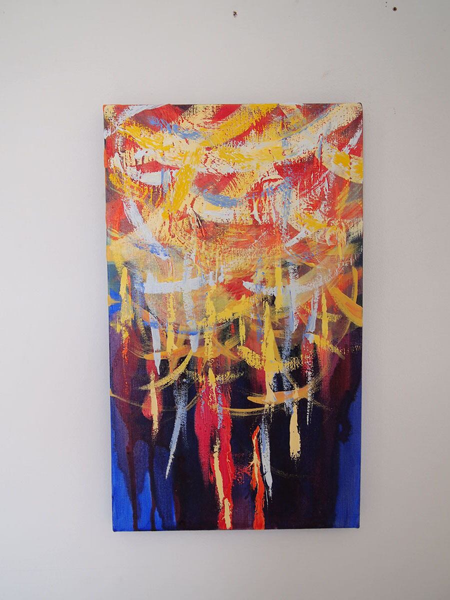 作曲家でありシンガーソングライターの富山優子の楽曲「ワンダーワールド」から着想し描いた作品です。「うすれゆくかなしみよ うまれゆくたましいよ」は「ワンダーワールド」の歌詞の一部です。