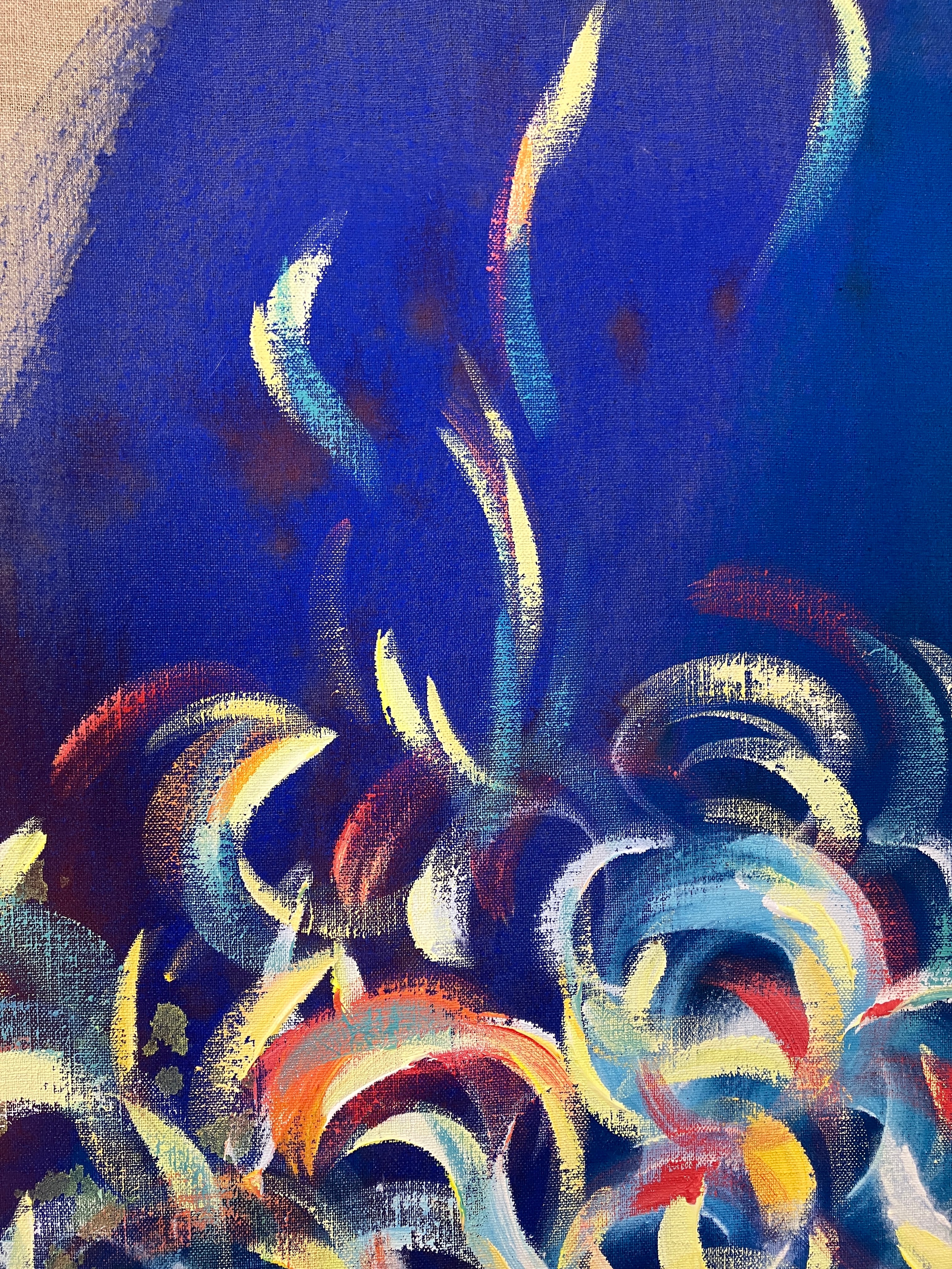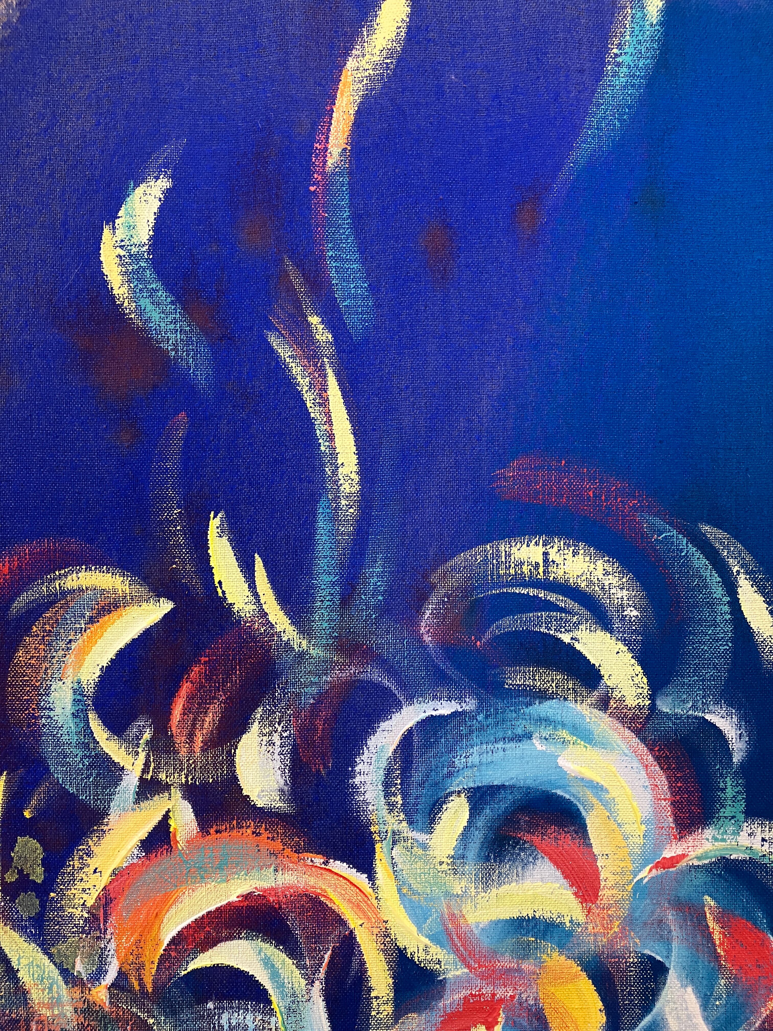 その響きを、魂の歌声を絵にしてみようと思い、取り組みました。